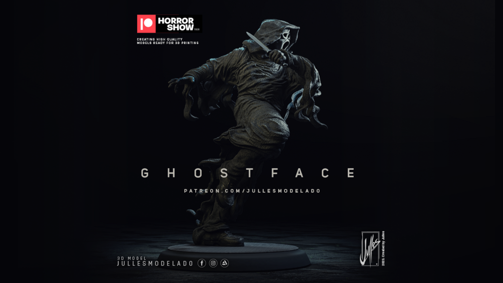 This is the model of the month of June in my Patreon www.patreon.com/Jullesmodelado You will get the files ready to print in 3D of this Ghostface in STL format with cuts and inserts divided into 14 parts. This model stands 13 inches tall (this model can be scaled to a maximum height of 16 inches and a minimum height of 10 inches). Thank you and I hope you enjoy it!!!!